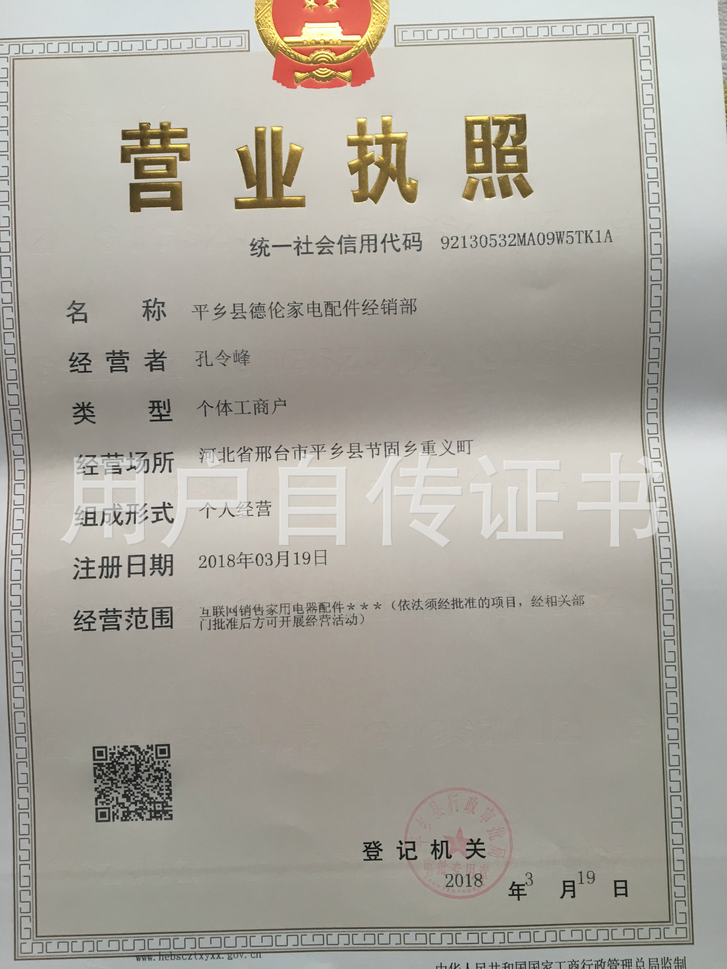| 發(fā)證機(jī)構(gòu): | 平鄉(xiāng)縣市場(chǎng)監(jiān)督管理局 | 發(fā)證時(shí)間 : | 2018-03-19 |