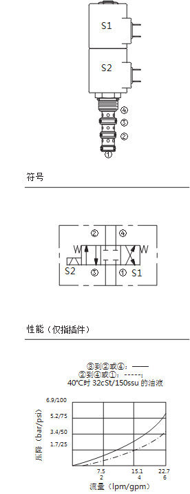 斷電時(shí),DASV10-47C 截止油液流向任何油口。 線圈 1 通電時(shí),允許