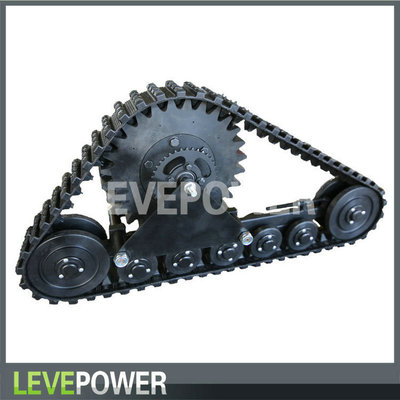 履帶采用高強度抗拉伸纖維,驅(qū)動輪采用高分子聚乙烯材質(zhì),帶有摩托車配套齒輪。是一種全地形摩托車總成。