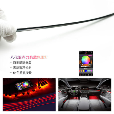 高維爾八代隱藏式車載智能氛圍燈亞克力64色浪漫內(nèi)飾燈汽車改裝燈