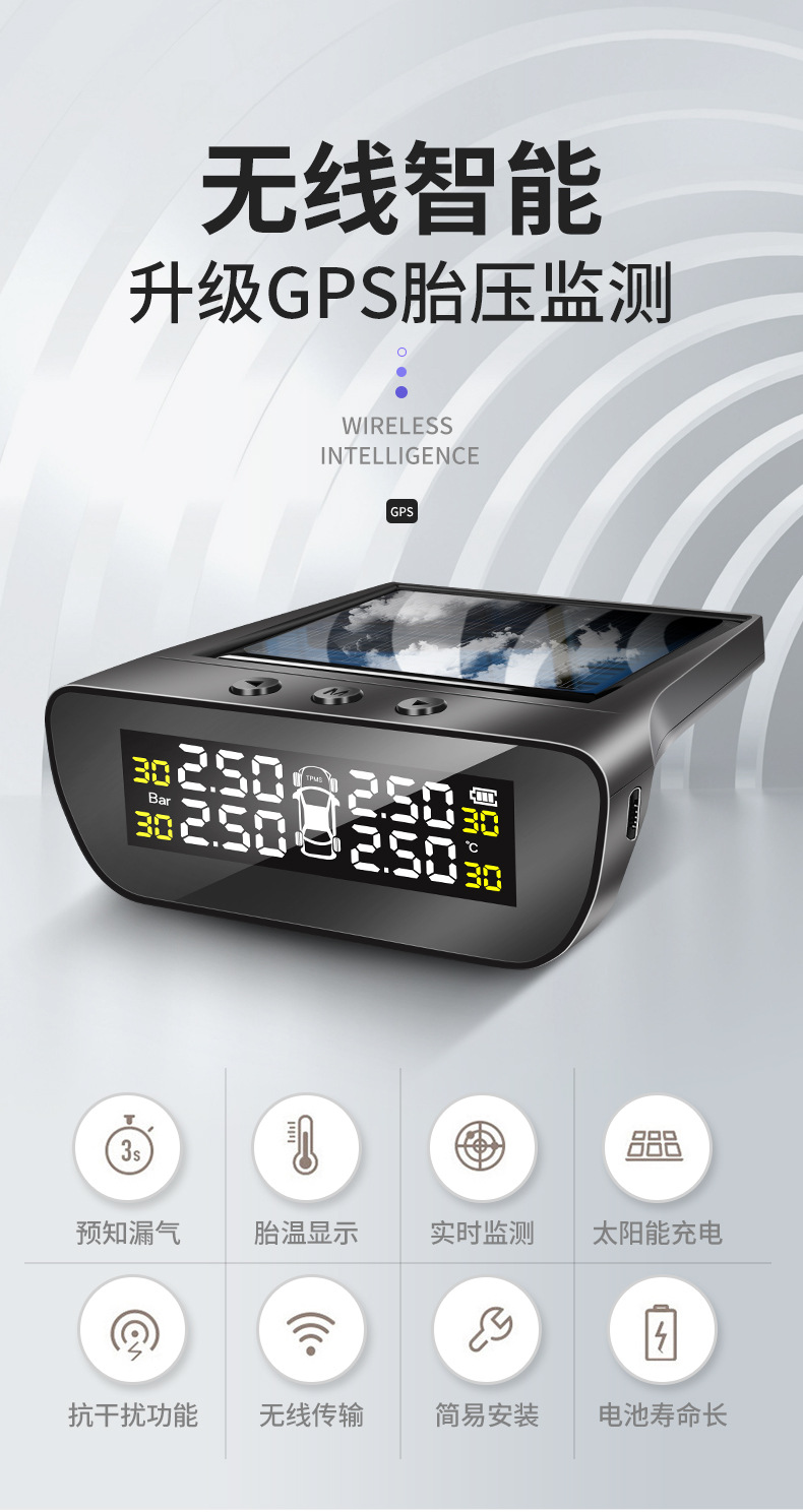 譽(yù)霸 GPS定位胎壓監(jiān)測器 外置汽車通用輪胎檢測無線太陽能胎壓