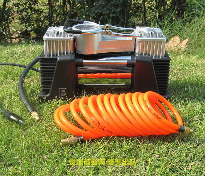 1、將橡皮膠管頂端氣門嘴直接旋緊在輪胎氣門上,聽到輪胎泄氣聲時(shí),表示空氣已經(jīng)流通,擰緊充氣氣嘴.。(特別提醒:氣門沒接好不通氣,會(huì)造成電流過高,燒毀電機(jī)或保險(xiǎn)絲)