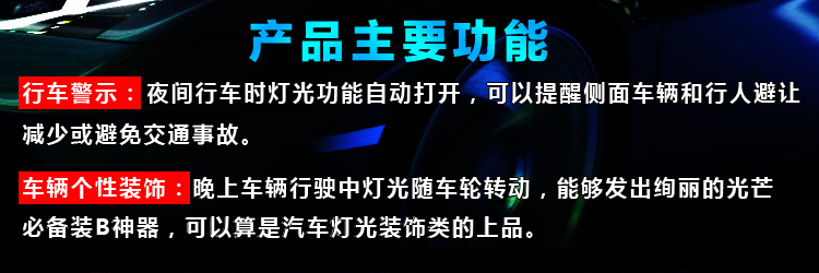1、 氣門嘴燈直徑約4.5CM,高度約2.4CM。安裝簡便,只需將產品旋緊于汽車輪胎氣嘴上即可,該過程單人15秒鐘以內可以完成;
