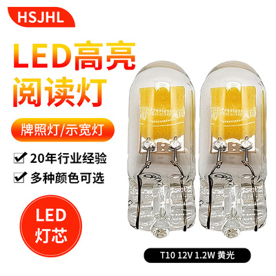 T10LED汽車示寬燈儀表燈閱讀燈牌照燈 W5W 12V玻璃封泡黃光