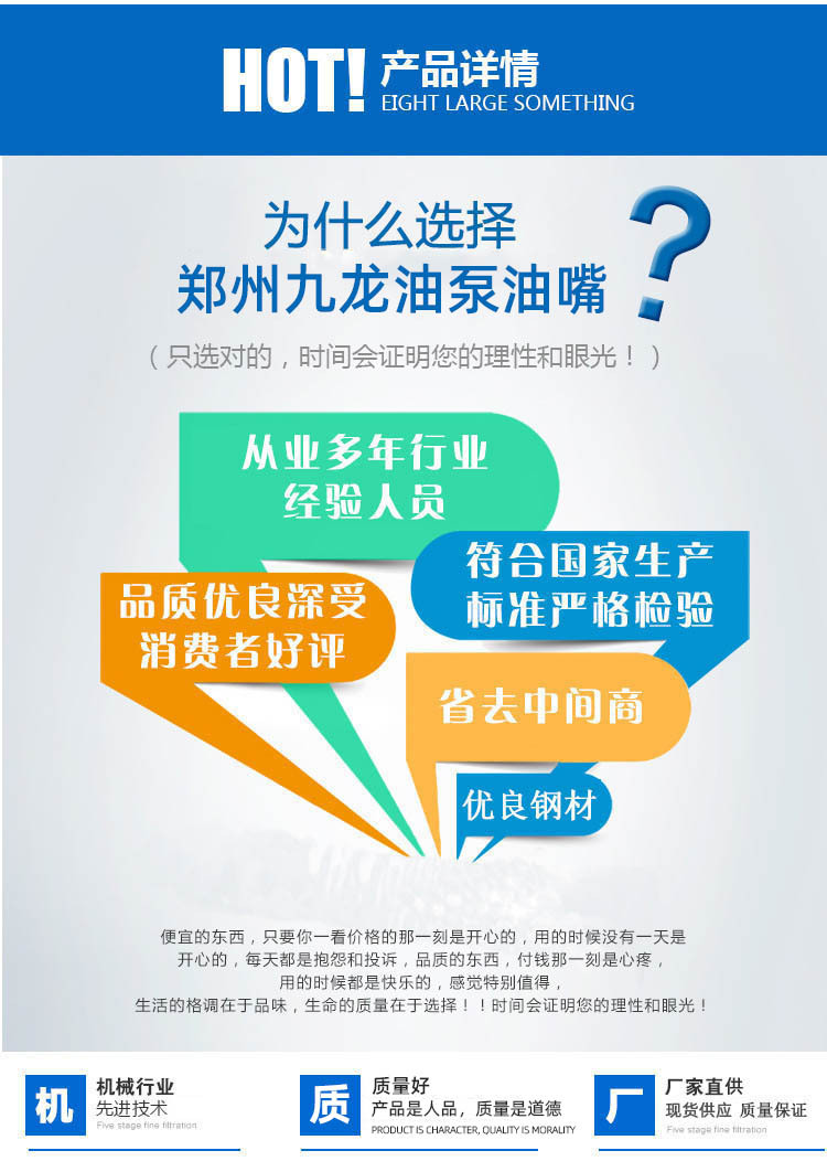 我們堅信,有企業(yè)精神和強有力的執(zhí)行能力,必將使我公司成為客戶、合作者和廣大員工滿意的企業(yè)。油泵、油嘴等產品專業(yè)生產加工的公司,完整、的質量管理體系。鄭州經濟技術開發(fā)區(qū)油泵店的誠信、實力和產品質量獲得業(yè)界的認可。歡迎各界朋友蒞臨參觀、指導和業(yè)務洽談。
