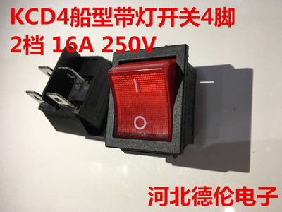 KCD4船型帶燈開(kāi)關(guān)4腳2檔翹板電源開(kāi)關(guān)按鈕 紅色大電流銀觸點(diǎn)16A250V,1盒50支,供應(yīng)批發(fā)。