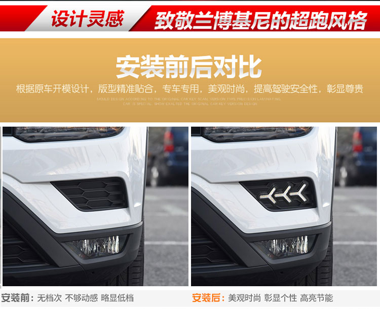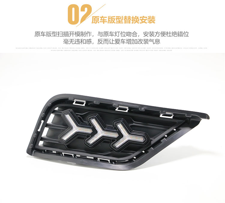 【安裝提示】: 需要拆杠安裝,將前杠兩邊黑框直接替換下來,將日行燈按照原車位卡扣直接固定安裝,適用于中低配車型,框上不帶雷達(dá)孔的。如有疑問直接聯(lián)系在線客服。