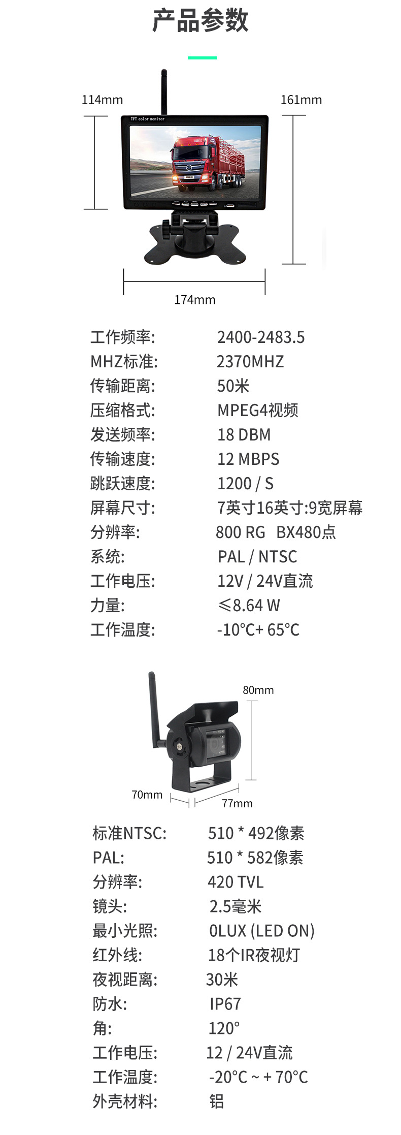 廠家wifi無線高清貨車倒車影像大貨車無線監(jiān)控倒車影像大巴記錄儀