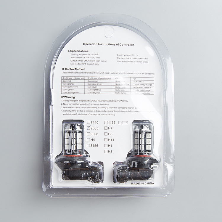 產(chǎn)品名稱:9005 9006 H7 H8 H11 7440 1156 27LED遙控七彩霧燈RGB倒車燈5050 一對(duì)裝