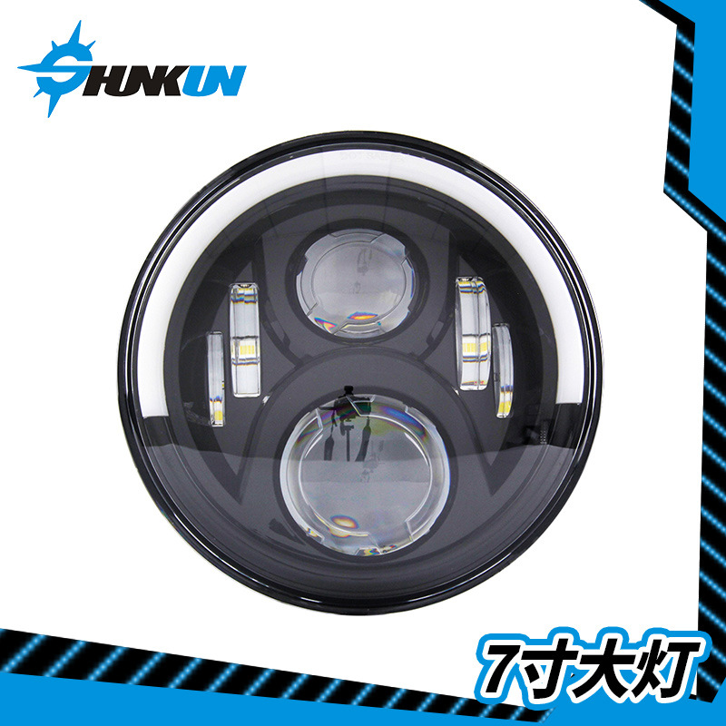 LED7寸三代遠(yuǎn)近光適用于牧馬人改裝前大燈哈雷大燈總成北汽大燈