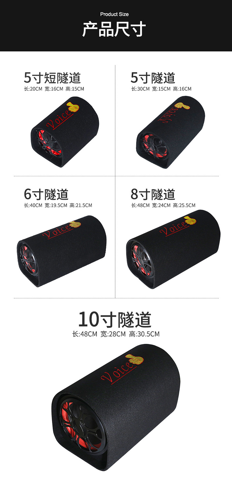 5寸6寸8寸10寸隧道型插卡汽車音響大功率藍牙車載音箱汽車低音炮