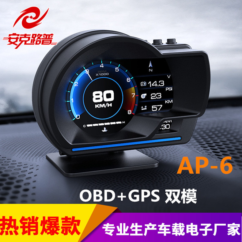 安克路普HUD抬頭顯示器液晶碼表AP-6雙模OBDGPS車載儀表汽車改裝