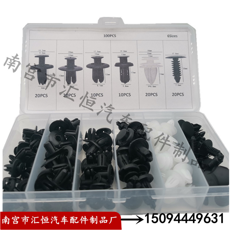 供100PCS盒裝卡扣配件通用型汽車(chē)門(mén)板卡扣膨脹螺絲固定卡扣
