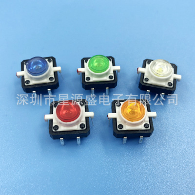 輕觸開關(guān)帶燈12*12*7.3 帶LED小型4腳復(fù)位按鍵微動按鈕常開立式