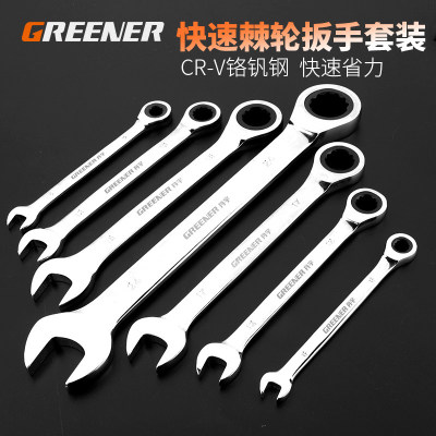 綠林快速扳手套裝/鏡面兩用扳手雙頭呆板手雙向棘輪省力扳手套裝
