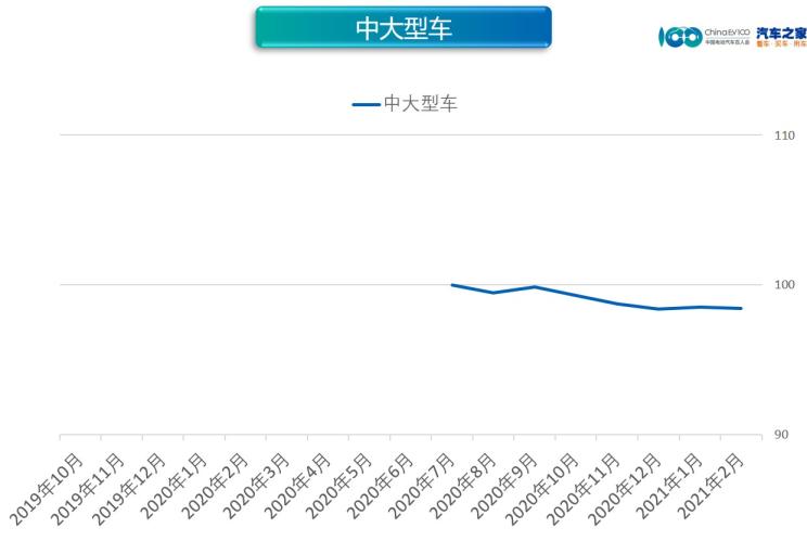 中大型車市場的價(jià)格指數(shù)為98.44,環(huán)比下降0.05%,細(xì)分市場整體均價(jià)為24.37萬元,較上月下降130元。