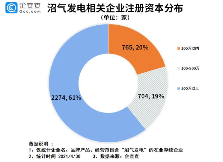 從注冊資本分布來看,我國沼氣發(fā)電相關(guān)企業(yè)中有20%的企業(yè)注冊資本在100以內(nèi),注冊資本在100-500之間的占比19%,注冊資本在500以上的企業(yè)最多,占比61%。