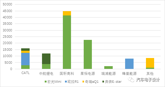 從一季度的裝機(jī)量來看,國(guó)軒598MWh排第一,寧德468MWh第二(相比而言,Model 3一臺(tái)車就要了寧德2.39GWh)。中航在奔奔E-star的上量拉到了第三。