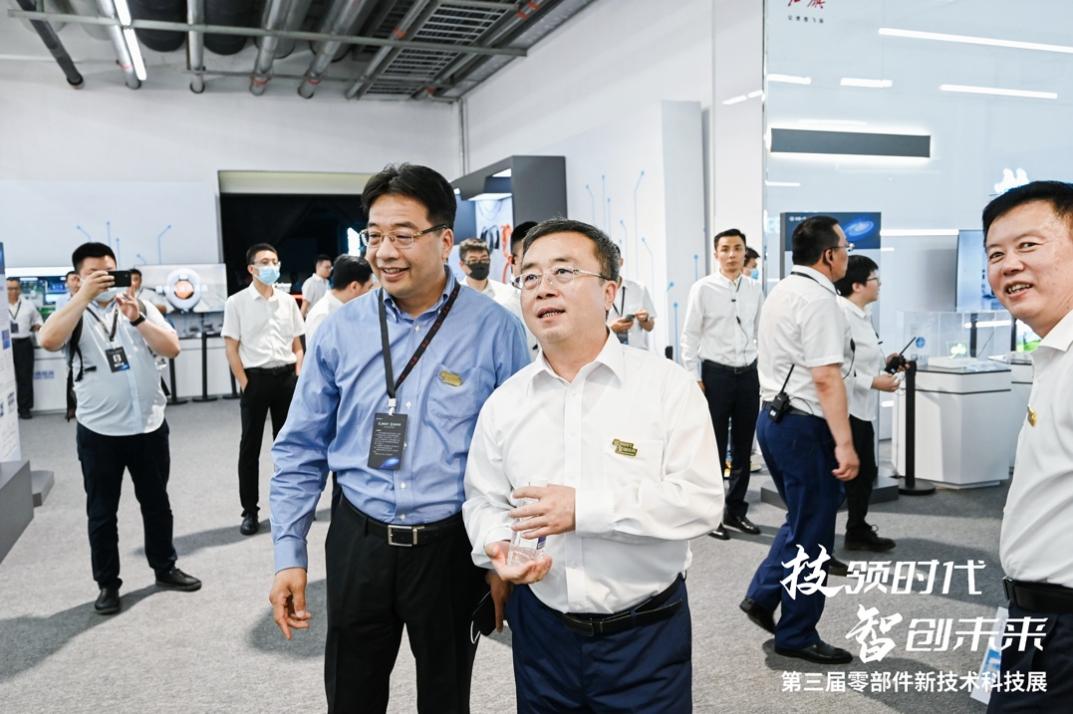 一汽集團(tuán)董事、黨委副書記王國強(qiáng)(右)參觀黑芝麻智能展區(qū)