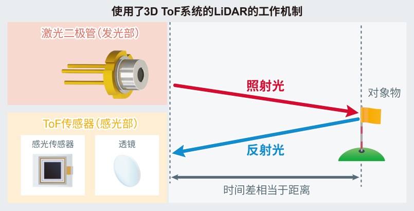 Light Detection and Ranging的縮寫,由ToF系統(tǒng)(光源和ToF傳感器或圖像傳感器等)等組成,用來感測周圍情況的一種應(yīng)用。
