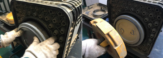 6、確保濾芯安裝牢靠后,用雙手旋入濾芯密封蓋,如有出現(xiàn)濾芯密封蓋無(wú)法完全旋入的情況,應(yīng)檢查濾芯是否有卡滯、安裝不到位的情況,濾芯密封蓋安裝無(wú)誤后,安裝側(cè)蓋板,依次緊固空氣濾清器周?chē)目ü?,檢查空氣濾清器密封性,確保各部件沒(méi)有泄漏。