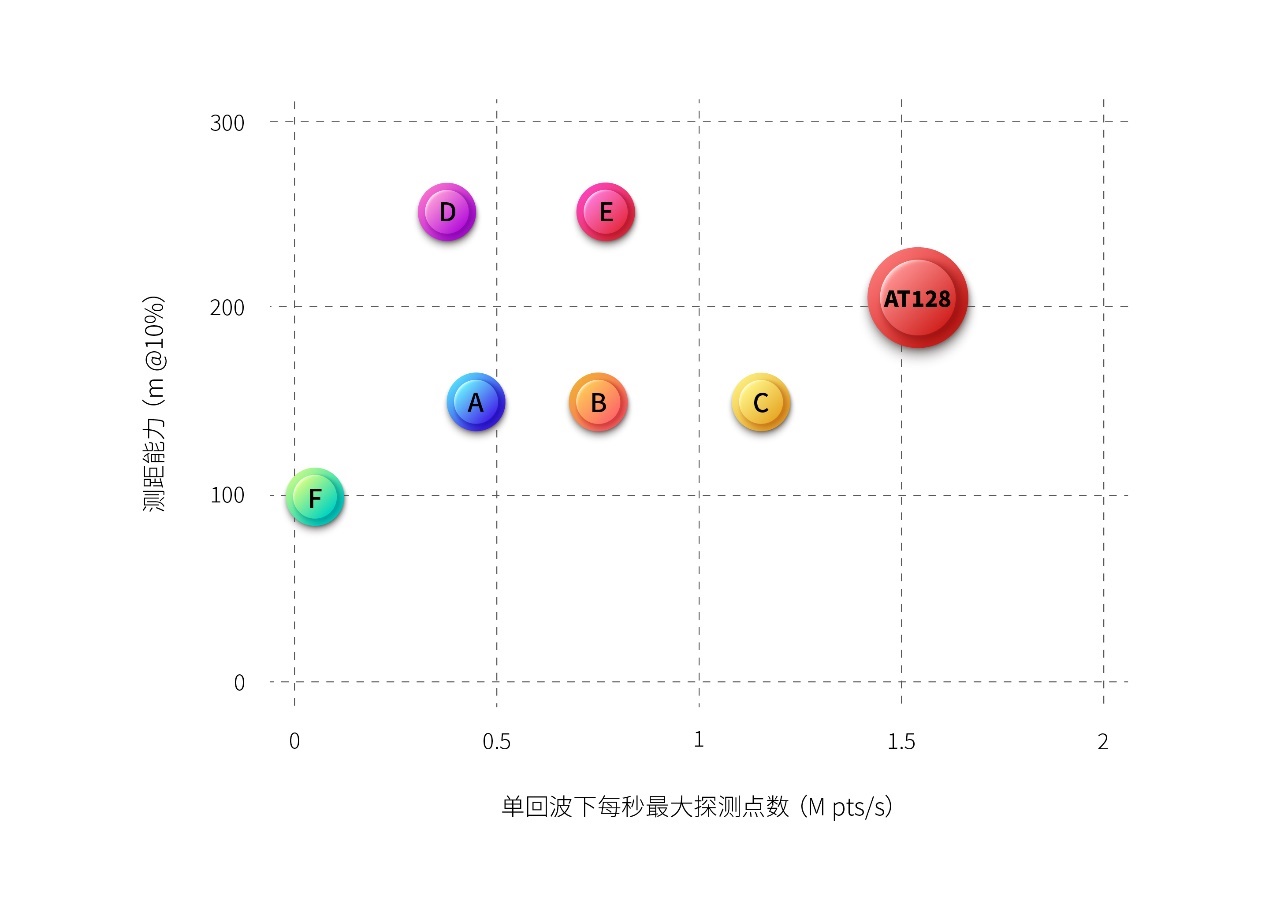 AT128的點頻超過每秒153萬個點,遠(yuǎn)遠(yuǎn)領(lǐng)先于競爭對手。