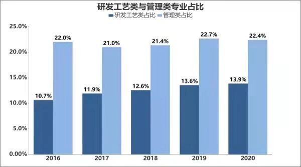 《用工對標(biāo)報告》顯示,從整體數(shù)量來看,這幾年行業(yè)的總研發(fā)人員數(shù)量基本維持不變。一方面,這說明“挖人”主要還在局限于行業(yè)內(nèi)部,因此在加速人員跳槽的同時,并沒有造成過多的人員外流,另一方面,這和近幾年來車企對研發(fā)團(tuán)隊(duì)的愈發(fā)重視息息相關(guān)。