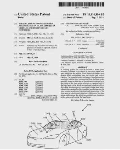 根據(jù)特斯拉在專利文件中的相關(guān)描述,我們可以發(fā)現(xiàn),這項(xiàng)專利的本質(zhì)其實(shí)是一種用于車輛的清潔系統(tǒng)。通過定位相關(guān)的碎屑,然后控制照射到碎屑上的激光光束強(qiáng)度,進(jìn)而將碎屑移除,是這套系統(tǒng)的基本工作原理。所以從構(gòu)成上來看,激光雨刷需要包括發(fā)射激光束以照射車輛玻璃制品上的光束光學(xué)組件、檢測(cè)積聚在該區(qū)域碎屑的檢測(cè)電路以及控制電路。