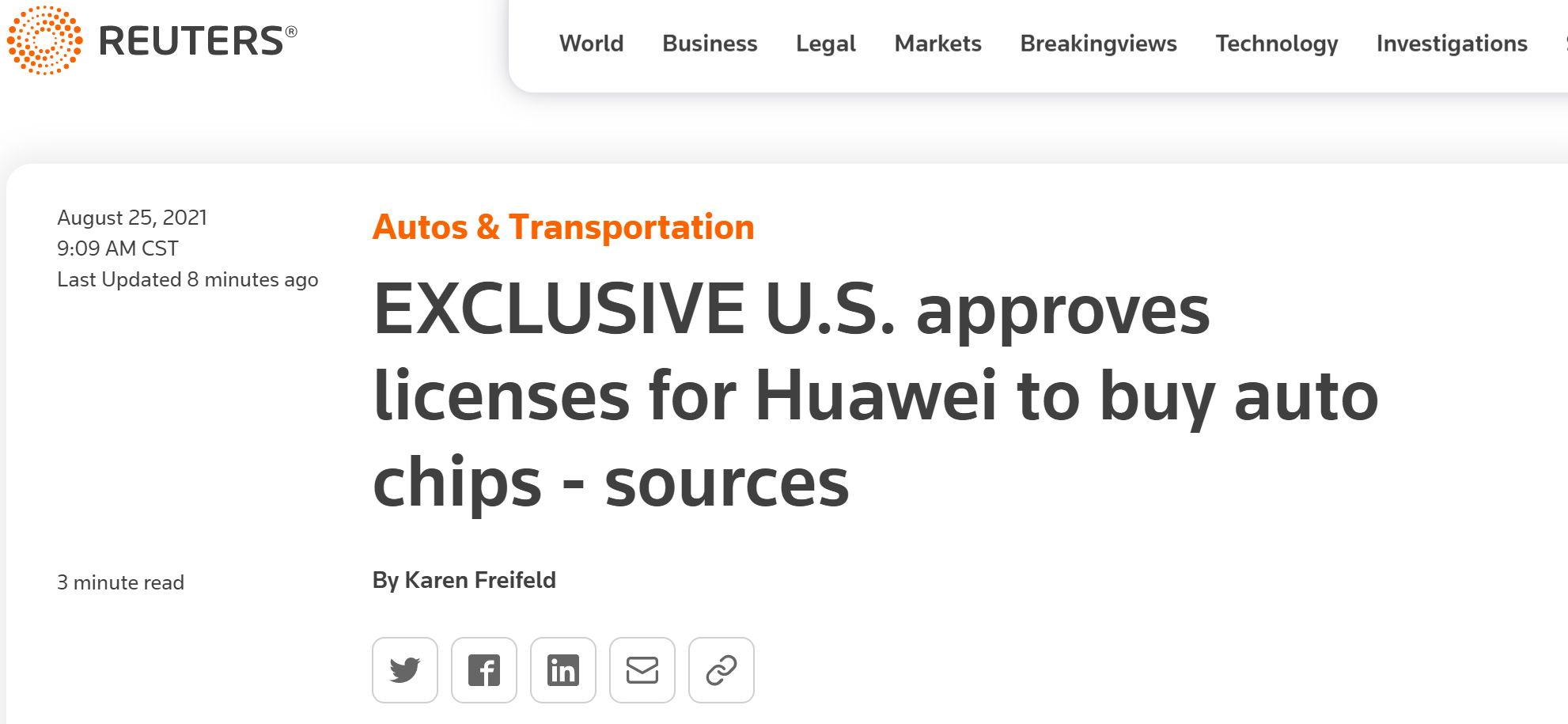 報道稱,最近一段時間,熟悉申請流程的人士告訴路透社,美國已向供應(yīng)商發(fā)放許可證,授權(quán)其向華為出售用于視頻屏幕和傳感器等汽車零部件的芯片。