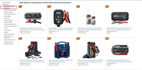 應(yīng)急啟動電源的跑火也在亞馬遜得到了驗證,其“汽車性能及零部件”(Automotive Performance Parts & Accessories)Best Sellers榜單中,應(yīng)急啟動電源更是呈刷屏模式。