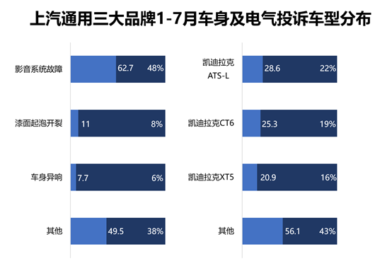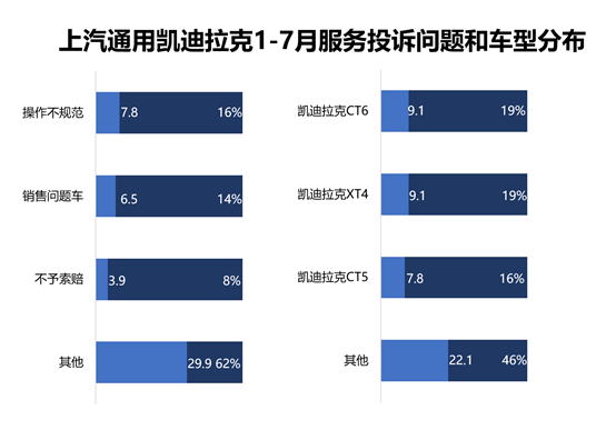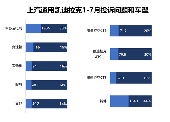 而從車型方面來看,凱迪拉克CT6和凱迪拉克XT4兩款問題集中車輛僅占了不到四成的投訴量。