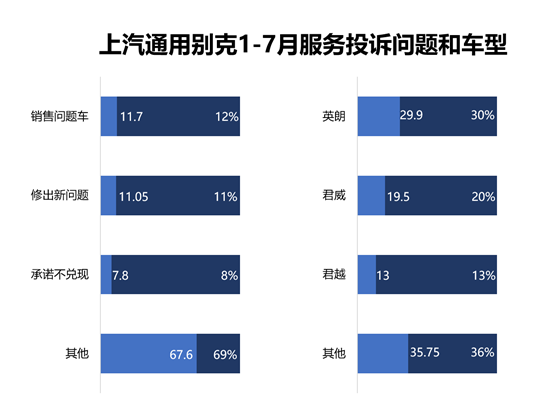 從服務(wù)方面來看,銷售問題車和承諾不兌現(xiàn)是別克服務(wù)方面的典型問題,這兩個問題都涉及到服務(wù)人員的素質(zhì)方面,這讓人對別克服務(wù)承諾抱有懷疑。而從車型方面來看,英朗和君威是服務(wù)方面最糟心的兩款車型,僅僅是這兩款車型就占了服務(wù)問題的一半,可見問題的嚴(yán)重性??偨Y(jié):別克的車身及電氣是該品牌受到廣大車主最集中投訴的問題。其中,儀表臺開裂是車身及電氣方面最集中爆發(fā)的故障因素。而發(fā)動機(jī)的異響、變速箱的頓挫和服務(wù)中有存在銷售問題車輛是別克在其他方面存在的典型問題。