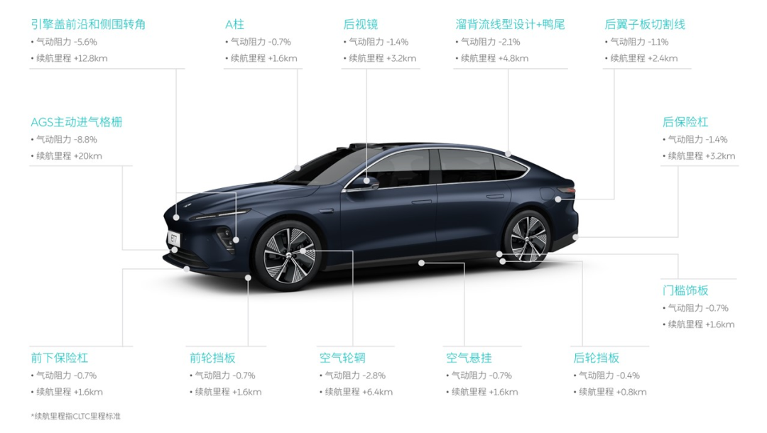 實(shí)際上,ET7的目標(biāo)續(xù)航里程相當(dāng)驚人。根據(jù)NIO DAY 2020上公布的信息,搭載全新150kWh電池包后,其續(xù)航里程可以達(dá)到1000+公里的超強(qiáng)水平,這里面自然少不了低風(fēng)阻系數(shù)的功勞。
