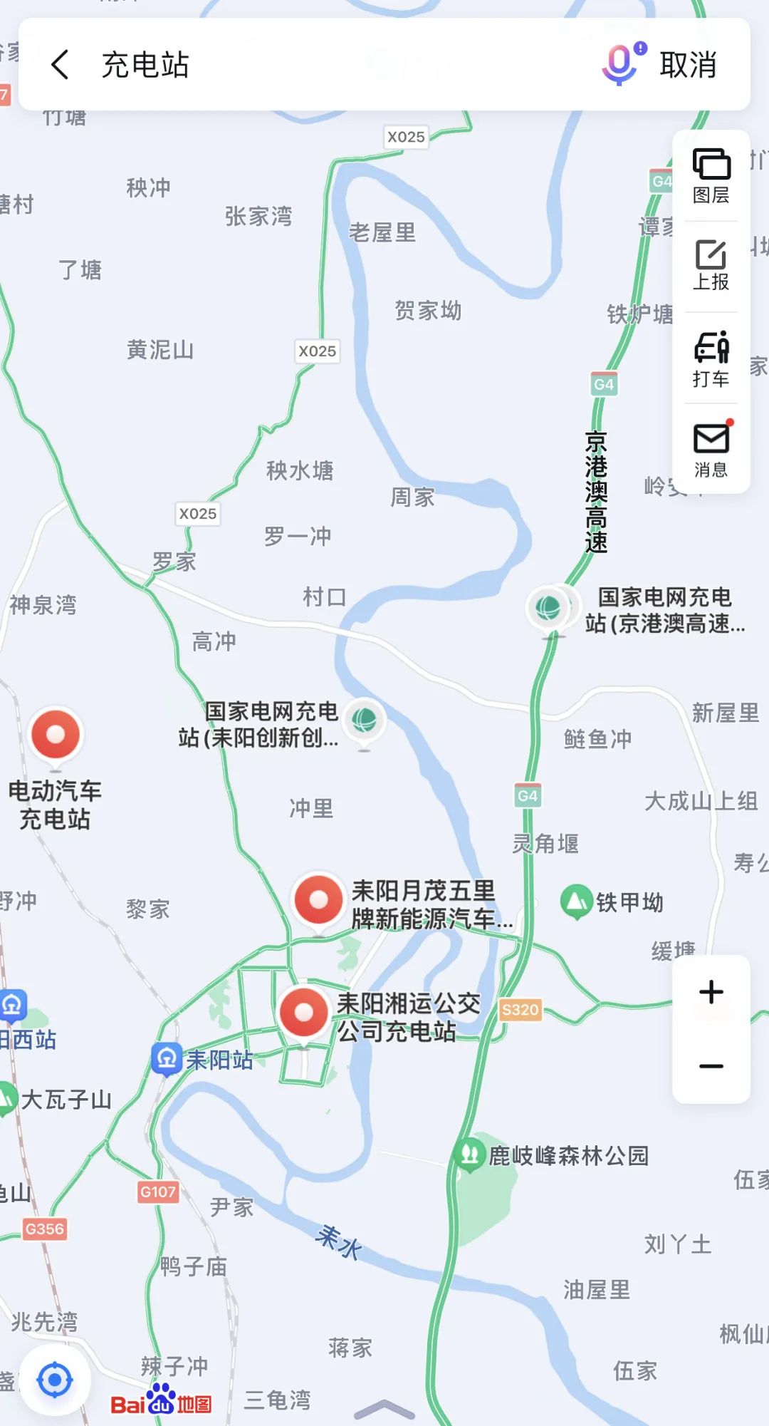 排除掉高速對向那個國網(wǎng)充電站以及可能不對外開放的耒陽湘云公交公司充電站,在周邊地區(qū)至少3個可對外開放的充電站設(shè)施,但這需要在G4高速路耒陽互通閘道口駛出高速,向西轉(zhuǎn)向耒陽市區(qū)方向。