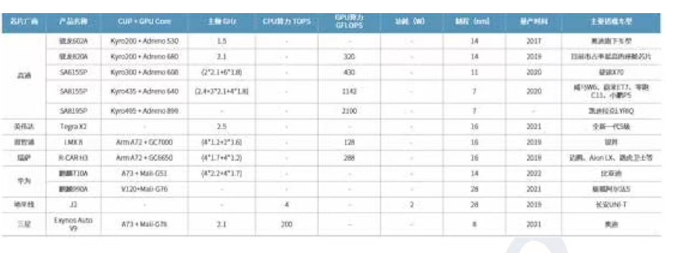圖4 主流座艙芯片供應(yīng)商產(chǎn)品
