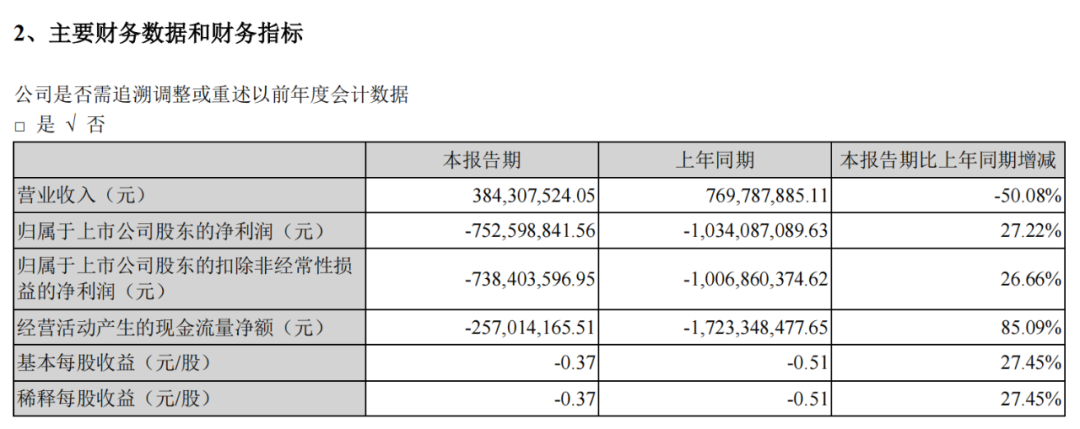據(jù)眾泰汽車發(fā)布的2021年半年報顯示,今年上半年其營收為3.84億元,同比減少50%;歸屬上市公司股東凈虧損雖然較去年同期縮減了27%,但依然有7.52億元的虧損。截至今年6月30日,眾泰汽車總資產(chǎn)為90.64億元,較去年末減少5億元;其負(fù)債合計142.34億元,較去年末增加2.34億元,可謂是嚴(yán)重資不抵債。