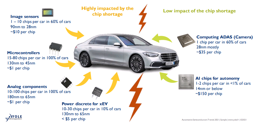 人們擔(dān)心公共交通可能會感染新冠病毒,購買電動汽車和/或二手車的公共激勵措施,對污染汽車的處罰導(dǎo)致新車需求快速增長。然而,美國嚴(yán)冬、瑞薩工廠火災(zāi)、中國臺灣干旱等災(zāi)難遇上蘋果、微軟、英偉達(dá)、AMD、英特爾推出新產(chǎn)品,令缺芯雪上加霜。