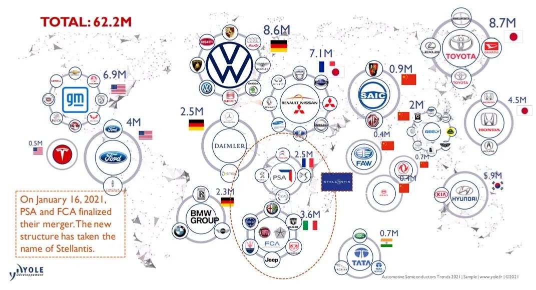 2020年全球汽車總銷量為6220萬輛;銷售總額為13.94億美元。Stellantis是2021年1月PSA(標(biāo)致雪鐵龍集團(tuán))和FCA(菲亞特克萊斯勒汽車公司)合并的產(chǎn)物,新的集團(tuán)將每年制造870萬輛汽車,成為大眾汽車、豐田汽車、雷諾-日產(chǎn)汽車之后全球第四大車企。