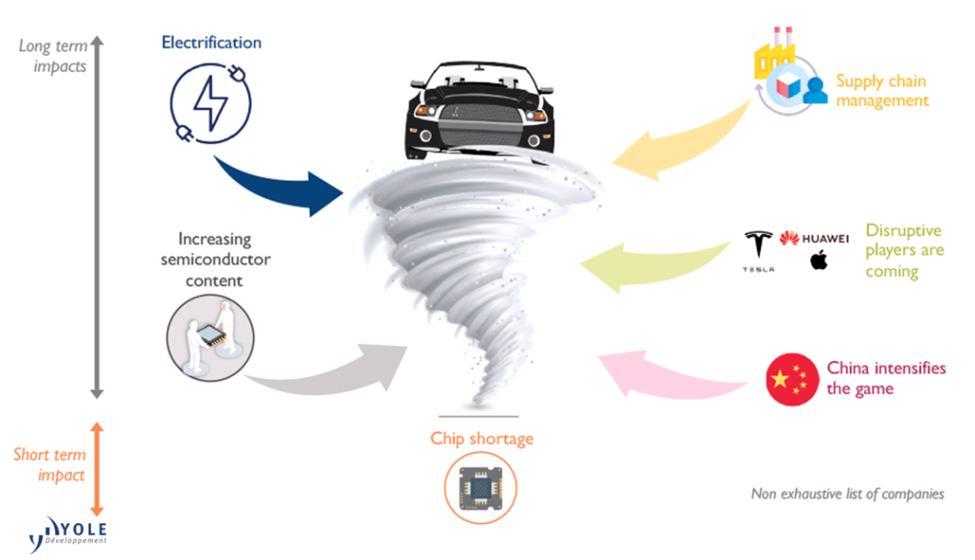 Yole表示,始于2020年11月,許多事件共同導(dǎo)致的芯片短缺可能持續(xù)到2022年下半年。直接后果是芯片價格上漲高達(dá)20%以上,致使供應(yīng)鏈中斷。