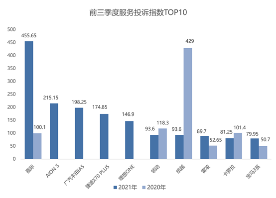 5理想ONE 服務(wù)投訴指數(shù):146.9