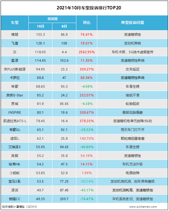 3比亞迪漢 投訴指數(shù):119.05