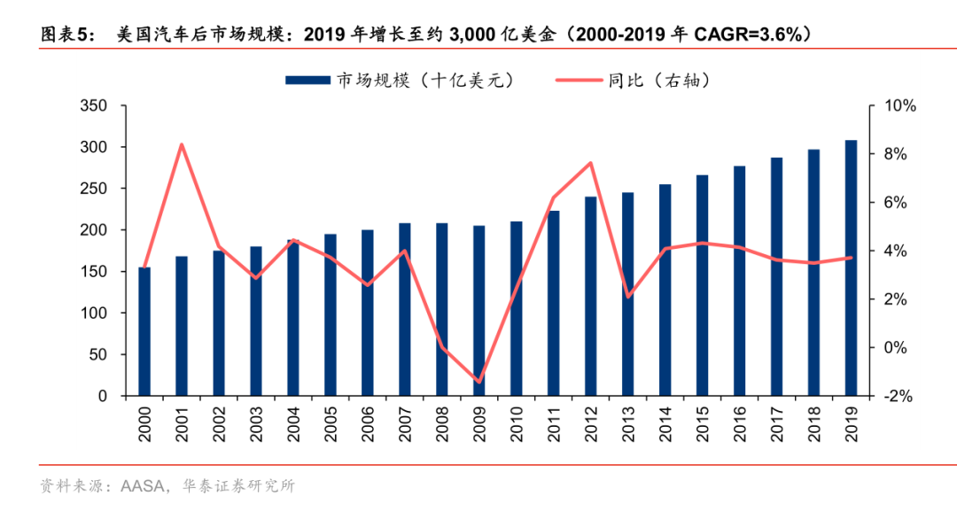 原因是美股汽車后市場(chǎng)和新車市場(chǎng)差異較大,一直保持穩(wěn)定增長(zhǎng),三個(gè)主要驅(qū)動(dòng)因素包括: