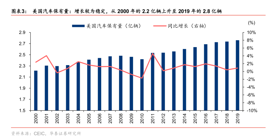1.汽車保有量的增長(zhǎng):2000-2019 年復(fù)合增長(zhǎng) 1.2%。