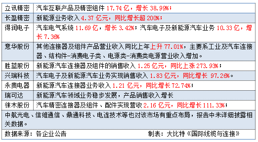 目前,我國(guó)連接器企業(yè)都加快了在新能源汽車領(lǐng)域布局的腳步,呈現(xiàn)出較好的發(fā)展態(tài)勢(shì),隨著新能源汽車的發(fā)展,也將會(huì)有更多國(guó)內(nèi)連接器企業(yè)加入到這個(gè)行列。