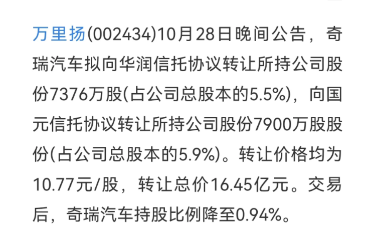 1、奇瑞想要減持萬里揚的股份,交易完成后持股比例將不足1%,這意味著奇瑞對萬里揚CVT并沒有抱太大的信心;