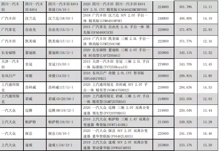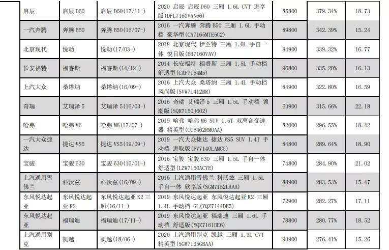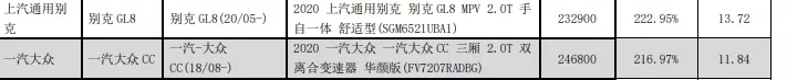 其中零整比最低的是一汽大眾CC,只有216.97%,值得一提的是,倒數(shù)第二零整比系數(shù)只有222.95%,與倒數(shù)第一不分上下,那就是別克的GL8。