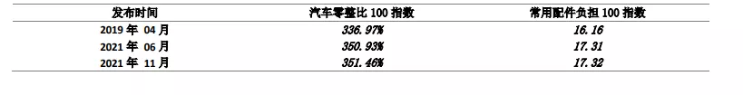 本期數(shù)據與之前的數(shù)據相比可以發(fā)現(xiàn),汽車零整比100指數(shù)還有常用配件負擔100指數(shù)開啟增長。