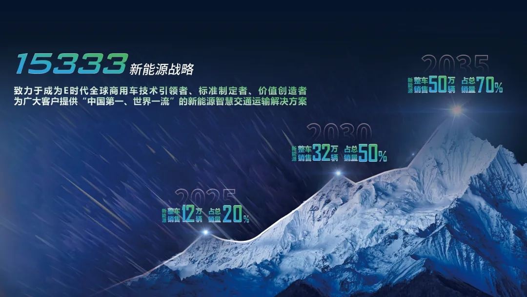 一汽解放將致力于成為E時(shí)代全球商用車技術(shù)引領(lǐng)者、標(biāo)準(zhǔn)制定者、價(jià)值創(chuàng)造者,為廣大客戶提供“中國(guó)第一、世界一流”的新能源智慧交通運(yùn)輸解決方案。要逐步實(shí)現(xiàn)新能源市場(chǎng)份額高于傳統(tǒng)車,新能源銷量占比高于全行業(yè)的“兩高”目標(biāo)。新能源的時(shí)代已經(jīng)來(lái)臨,一汽解放作為商用車行業(yè)的引領(lǐng)者,國(guó)家雙碳戰(zhàn)略目標(biāo)的踐行者,正在踏著堅(jiān)實(shí)的步伐,披堅(jiān)執(zhí)銳,構(gòu)建解放新能源轉(zhuǎn)型的恢弘藍(lán)圖。解放將以推動(dòng)新能源汽車行業(yè)健康發(fā)展為重要使命,持續(xù)為用戶創(chuàng)造價(jià)值,為社會(huì)創(chuàng)造財(cái)富,為國(guó)家的碧水藍(lán)天貢獻(xiàn)解放力量。