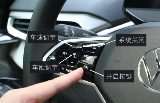 首先是它的開(kāi)啟方式,非常簡(jiǎn)單,如下圖,包括一鍵開(kāi)啟、車(chē)距調(diào)節(jié)、車(chē)速調(diào)節(jié)都可以通過(guò)按鍵操作,比較便捷。(前提是車(chē)道線明顯)