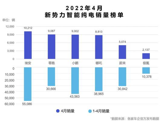 以4月份銷量為例,埃安月銷量達到了10212輛,領先于零跑、小鵬、哪吒、蔚來等新勢力,和這些品牌相比,其銷量確實不俗。
